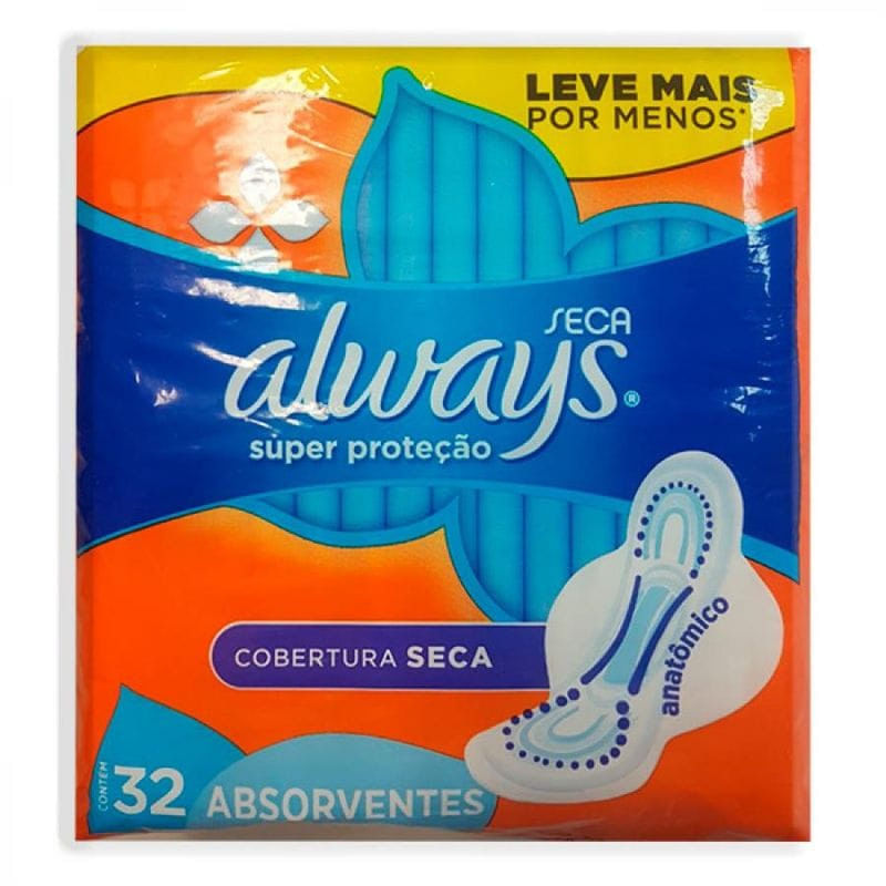 Absorvente Always Super Proteção Cobertura Seca com Abas 32 unidades