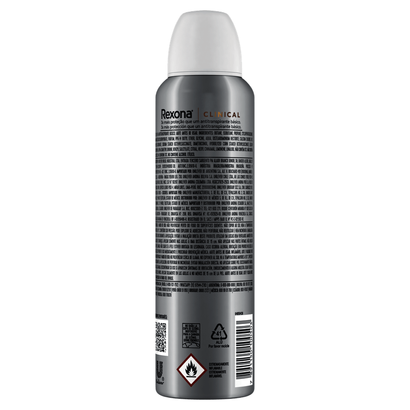 Antitranspirante Aerossol Spray Rexona Clinical Invisible 150mL