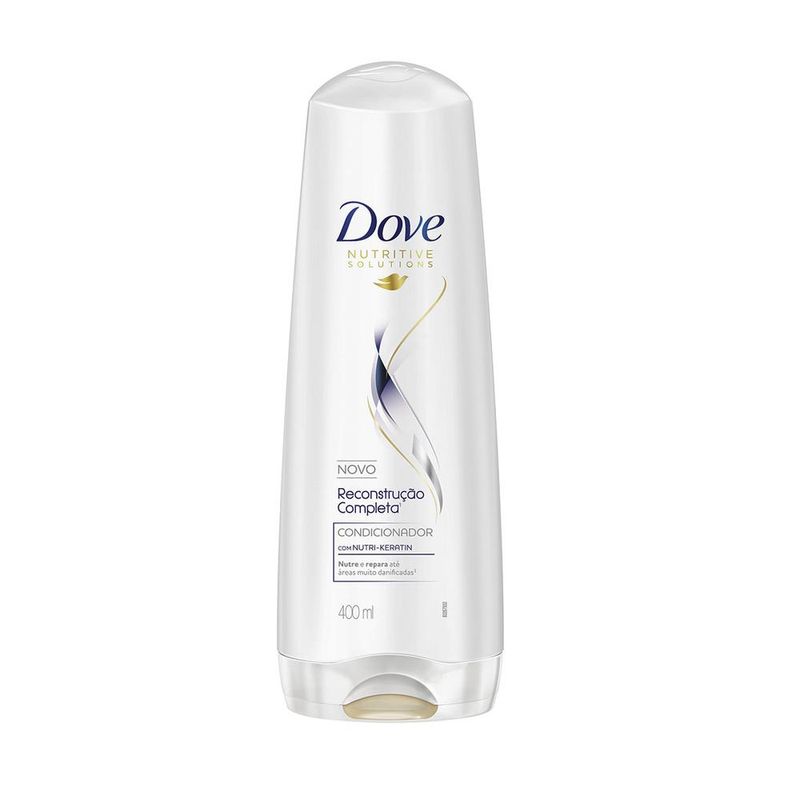 Dove Reconstrução Completa é uma linha de produtos, composta por Shampoo e Condicionador, enriquecida com uma mistura de ingredientes ativos reparadores de queratina capilar, que progressivamente nutrem o cabelo e o fortalecem para protegê-lo por dentro e torná-lo mais resistente a danos futuros .