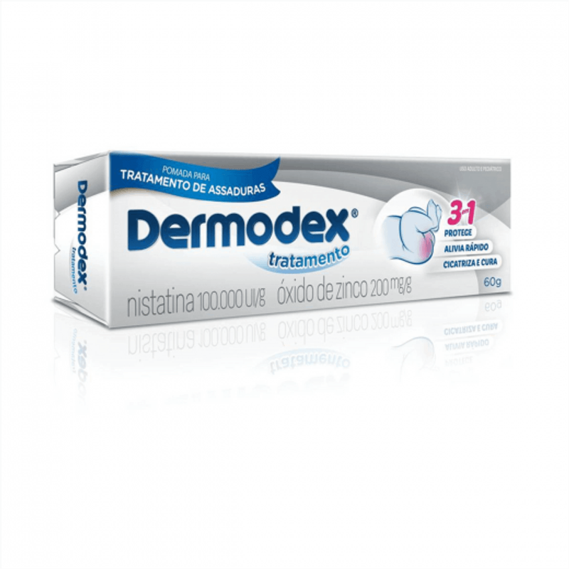 Diversos trabalhos mostram que em assaduras de bebês é comum a infecção pelo fungo conhecido como Cândida (é o mesmo fungo que aparece na boca de bebês com o nome de sapinho e em inúmeros corrimentos vulvovaginais). Dermodex Tratamento tem na sua fórmula duas substâncias, uma que age eliminando esse fungo e a outra que cicatriza e protege a pele por meio da formação de uma camada protetora que reduz a fricção entre a pele e as fraldas e impede o contato da pele com urina e fezes.