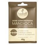 A Dose Haskell Concentrada Mandioca é um tratamento hidratante e nutritivo de alto impacto indicado para todos os tipos de cabelo, especialmente os cabelos secos e opacos. Sua formulação contém ativos de alta performance, que em apenas 1 minuto, repõe os nutrientes essenciais para fortalecer, iluminar e estimular o crescimento dos cabelos. Como todos os produtos da linha Mandioca, a Dose Concentrada contém extrato de mandioca, vitaminas e minerais. Produto ideal para você usar naqueles dias em que seu cabelo precisa de um tratamento potente, mas você está totalmente sem tempo!