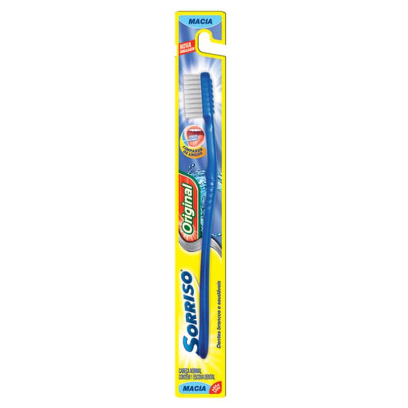 A escova dental Sorriso Original foi desenvolvida para promover uma escovação confortável e eficiente. Suas cerdas arredondadas limpam os dentes e massageiam a gengiva O cabo com apoio antiderrapante oferece mais firmeza na escovação O limpador de língua ajuda a remover as bactérias causadoras do mau hálito. A IMAGEM DO PRODUTO É MERAMENTE ILUSTRATIVA. PRODUTO SEM ESCOLHA DE COR. SERÁ ENVIADA A COR DISPONÍVEL NO MOMENTO DA COMPRA.