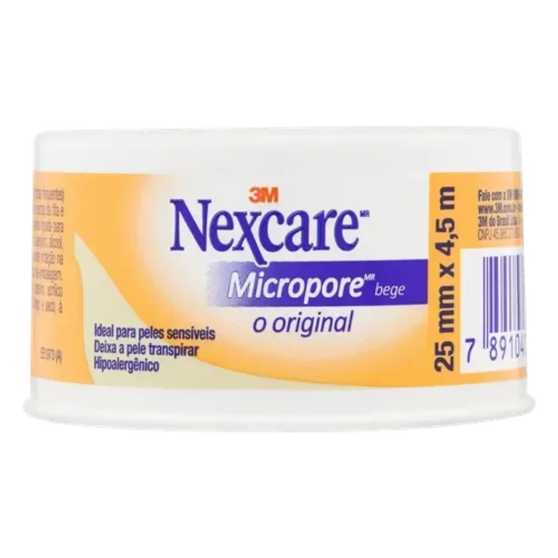 Fita Micropore Bege Original Peles Sensíveis Nexcare 3M 12mmx4,5m (Rótulo Bege) - Ideal para curativos em geral em regiões do corpo com mais sensibilidade, uso diário e prolongado - Deixa a pele transpirar e é hipoalergênico. Principais benefícios: - Fita hipoalergênica delicada e porosa. - Deixam a pele transpirar. - Com lacre de segurança que impede violação. COMPOSIÇÃO: Rayon de viscose não-tecido com adesivo acrílico hipoalergênico. REMOÇÃO: Levante cuidadosamente as bordas da fita e puxe paralelamente à pele. Se necessário, aplique vaselina líquida para facilitar a remoção. ADVERTÊNCIAS: Não use tintura de benjoim, álcool, éter, benzina e outros solventes para remoção. Se ocorrer irritação na pele, descontinue o uso. Registro ANVISA: 80284939076.