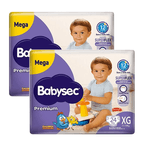 2 Fraldas Babysec Galinha Pintadinha Premium Mega XG com 24 unidades cada.