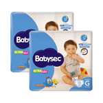 2 Fraldas Babysec Ultrasec Jumbinho Galinha Pintadinha G com 16 unidades cada.