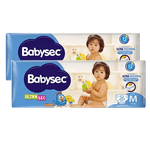 2 Fraldas Babysec Ultrasec Jumbo Galinha Pintadinha M com 26 unidades cada.