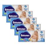 5 Fraldas Babysec Ultrasec Jumbo Galinha Pintadinha P com 28 unidades cada.