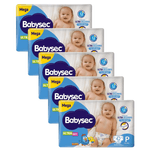 5 Fraldas Babysec Ultrasec Mega Galinha Pintadinha P com 42 unidades cada.