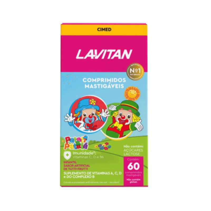 Sem adição de açúcar e zero lactose, o Suplemento Vitamínico Lavitan Kids está disponível em comprimidos mastigáveis com sabor de tutti-frutti (artificial). É uma forma gostosa e super divertida de oferecer aos seus filhos as vitaminas que eles precisam para um crescimento muito mais saudável.