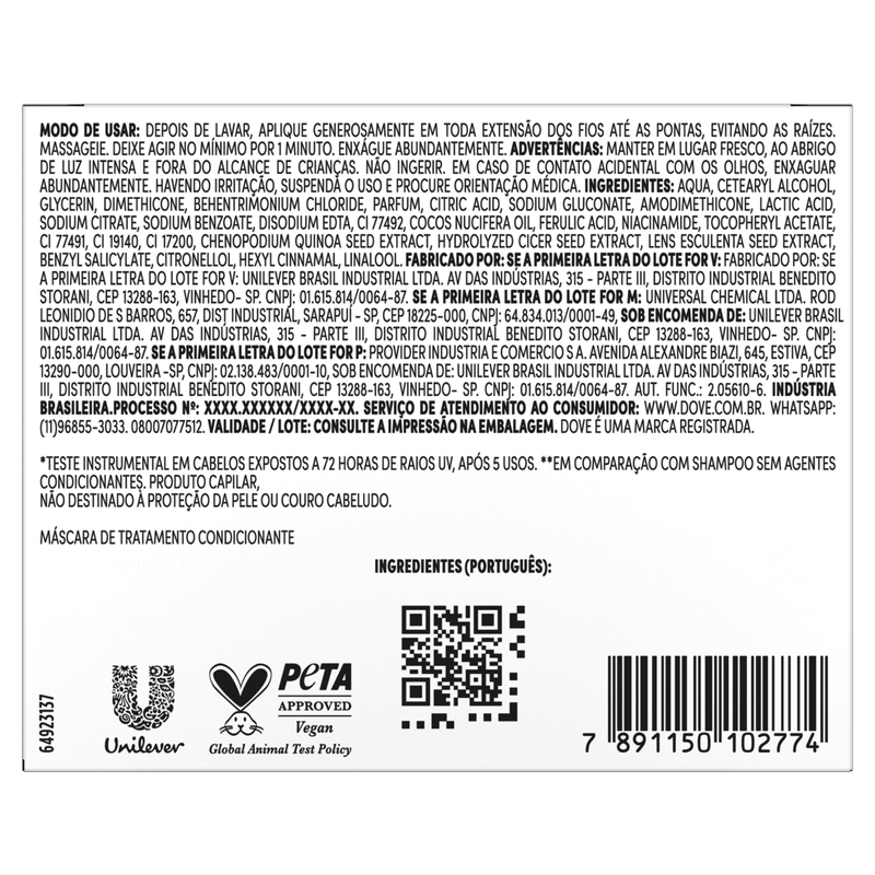 Máscara de Resgate Dove UV Repair & Glow + Ferúlico 250g