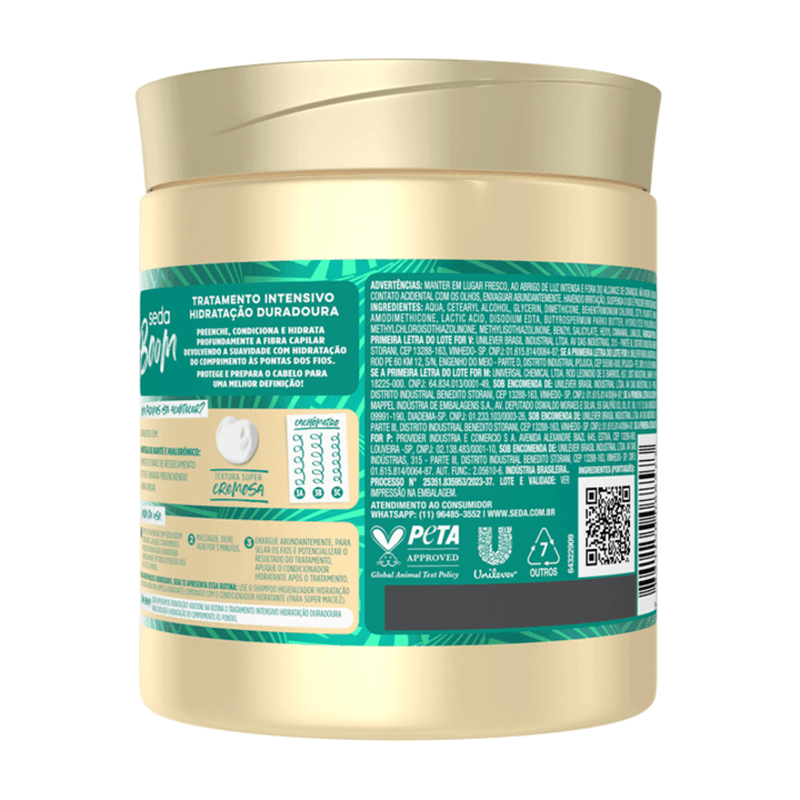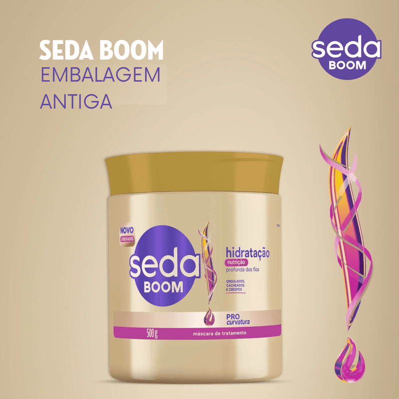 A nova geração da linha expert Seda Boom ProCurvatura, traz uma tecnologia exclusiva para definir, modelar e expressar o volume de todos os tipos de curvaturas, garantindo seu resultado duradouro por até 72 horas. Indicado para onduladas, cacheadas e crespas, a nova Máscara de Tratamento Seda Boom Hidratação Profunda dos Fios une a tecnologia ProCurvatura com ingredientes da natureza como Óleo de Macadâmia e Óleo de Rícino, para hidratar e nutrir seu cabelo profundamente, ativando seu brilho e devolvendo a maciez aos fios. Além disso, possui fórmula liberada, ótimo para usar também no Day After (nos dias posteriores à lavagem e finalização). Além da Máscara de Tratamento Hidratação Profunda dos Fios, a linha também conta com outros produtos como: Shampoo, Condicionador e diversos Cremes para Pentear. O que são produtos com fórmula liberada? São cosméticos que não possuem (ou possuem em pouca quantidade) substâncias que podem agravar o ressecamento, principalmente cabelos cacheados, como o sulfato, o petrolato, a parafina, os óleos minerais e os parabenos. Esses produtos com fórmula liberada promovem uma limpeza de maneira mais suave, mantendo a hidratação natural dos cabelos e ajudando a evitar o ressecamento.