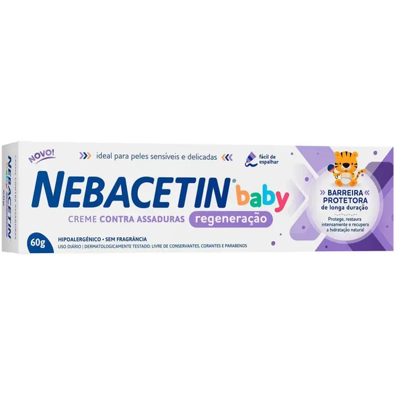 Nebacetin Baby Regeneração é um creme preventivo de assaduras de uso diário que forma uma camada protetora de textura leve, mantendo a pele do bebê macia hidratada e saudável. Já Nebacetin Baby Regeneração é um creme para o cuidado da pele já sensibilizada, com 3X mais poder de regeneração*, que forma uma barreira protetora de longa duração.