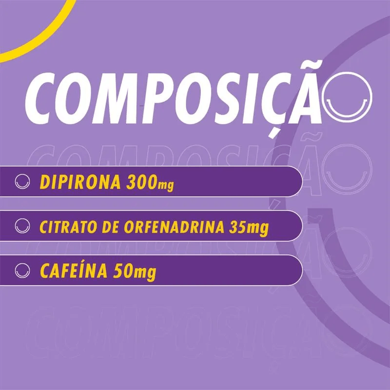 Para que serve: É um medicamento com atividade analgésica (diminui a dor) e antiespasmódica (diminui contração involuntária) indicado para o tratamento de diversos tipos de dor de cabeça, incluindo enxaquecas ou para o tratamento de cólicas.
