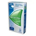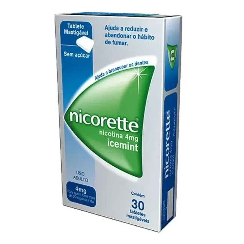 Quando a goma de Nicorette® é mascada, ocorre a liberação da nicotina que é absorvida na boca e promove o alívio dos sintomas relacionados à ausência de nicotina. O início da ação é imediatamente após mascar a goma.