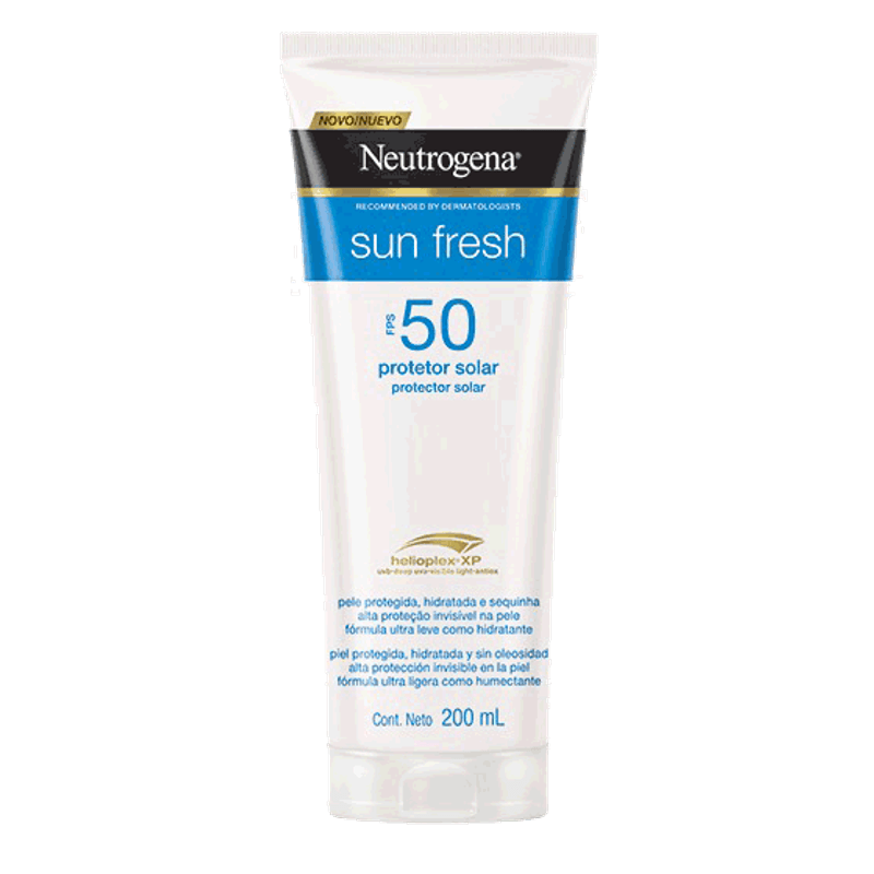 O Protetor Solar Neutrogena Sun Fresh FPS 50 possui uma fórmula não oleosa e com alto poder de absorção, devido à tecnologia Helioplex que proporciona uma solução altamente eficaz e uma proteção ampla e imediata contra os raios UVA/UVB, garantindo uma pele protegida, intensamente hidratada, seca e fresquinha .