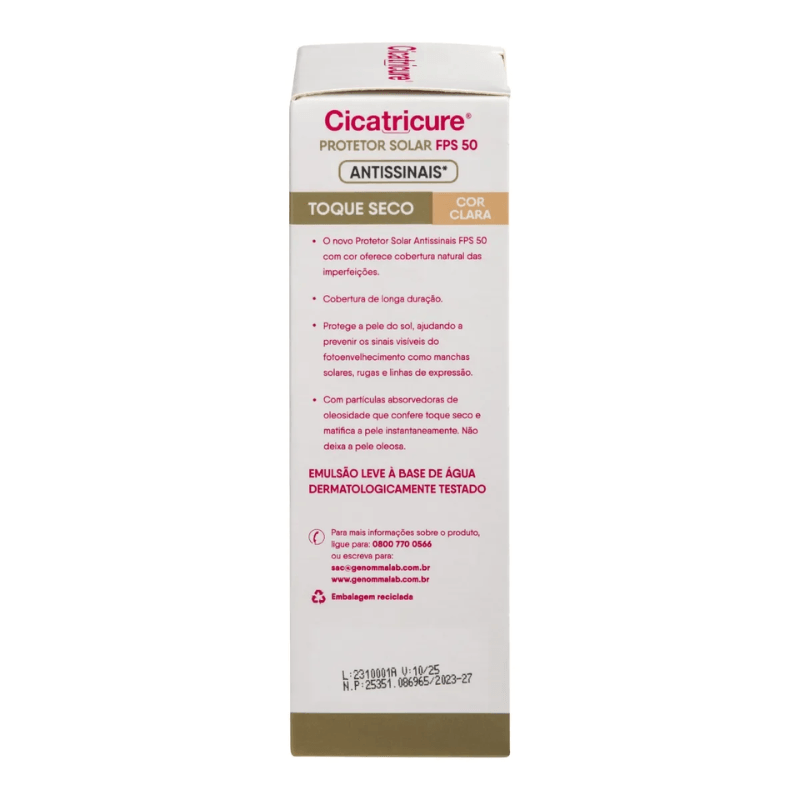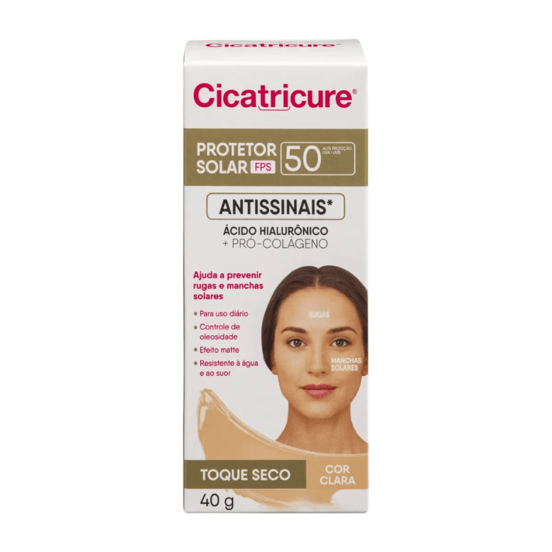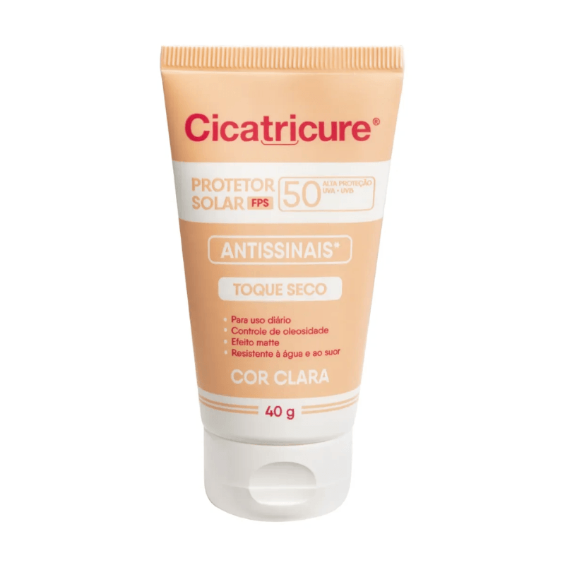 O Protetor Solar Facial FPS 50 Cicatricure Clara 40g é um protetor solar de alta proteção contra os raios UVA e UVB, desenvolvido especialmente para o cuidado diário da pele do rosto. Com cor clara e acabamento leve, ajuda a uniformizar o tom da pele enquanto protege contra os danos solares e o envelhecimento precoce. Sua fórmula é resistente à água e ao suor, proporcionando uma proteção eficaz ao longo do dia.