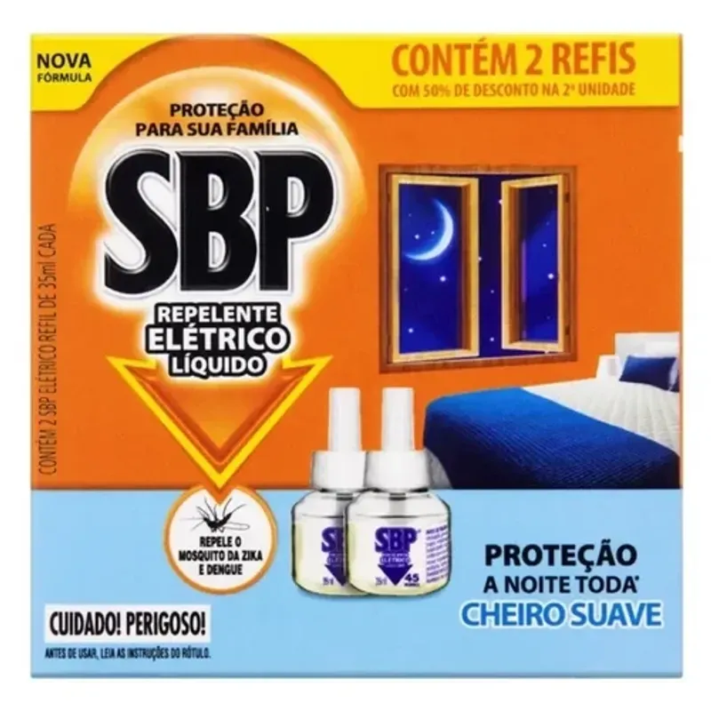 SBP Repelente Líquido Elétrico Cheiro Suave oferece proteção contínua em sua casa para toda a família. Ele afasta pernilongos e mosquitos do ambiente, proporcionando 8 horas de sono tranquilo por até 45 noites. SBP Elétrico pode ser usado em lugares com crianças a partir de 6 meses. Ele repele o mosquito Aedes aegypti transmissor da dengue, zika, Chikungunya e febre amarela. É prático e fácil de usar! SBP Líquido Elétrico Proteção por 45 Noites é um repelente elétrico recomendado para uso em diversos cômodos da casa, no seu quarto, no quarto das crianças e na sala de estar, agindo em todos os cantos. Ele mantem o ambiente livre de mosquitos, deixando todos os ambientes seguros para aproveitar os momentos em família, sem risco de levar picadas de pernilongos, que causam tanto incômodo. Todos vão amar ter noites tranquilas de sono, livres do barulho e das picadas de mosquitos. Afinal, SBP é terrível contra os insetos, contra os insetos.
