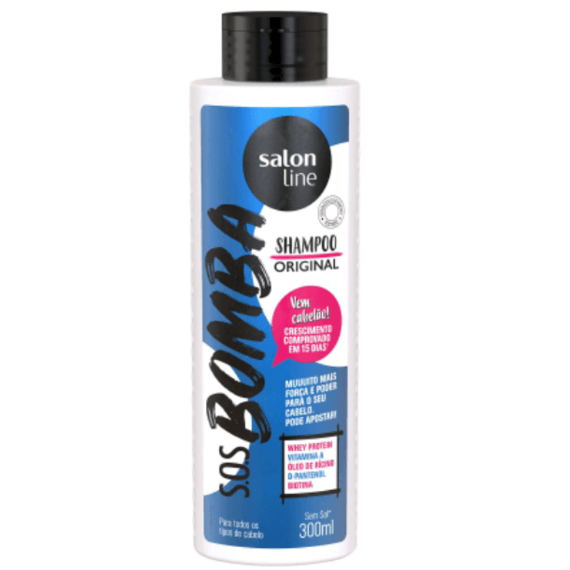O Shampoo S.O.S Bomba Original Salon Line, além de limpar, possui testes que comprovam o crescimento capilar em até 15 dias. Indicado para todos os tipos de cabelo. seus benefícios são: crescimento comprovado, combate o ressecamento, cabelos mais fortes e brilho saudável. o cabelo fica com fios longos, fortes e super saudáveis.