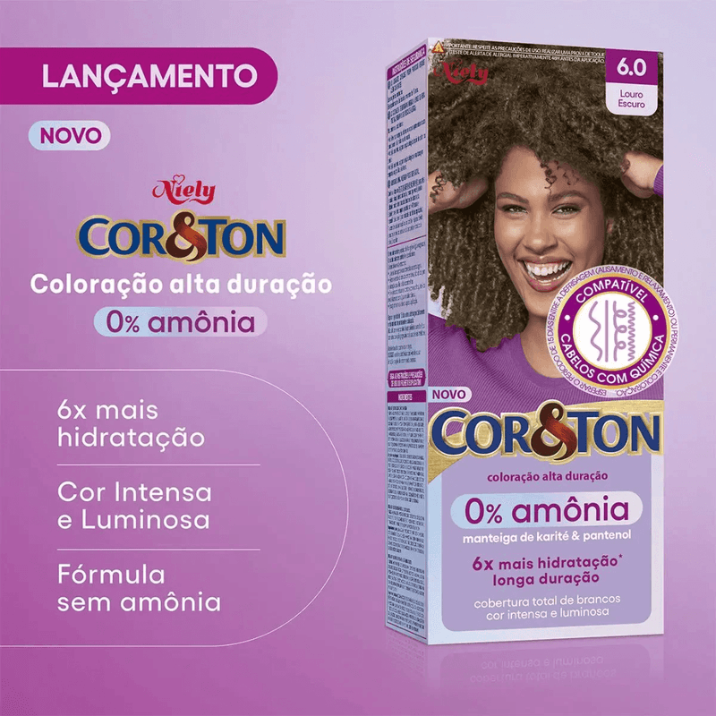 A Tintura Cor&Ton Niely 0% Amônia 6.0 Louro Escuro proporciona uma coloração intensa e duradoura aos cabelos, sem o uso de amônia, oferecendo um cuidado mais suave para os fios. Sua fórmula contém ingredientes que hidratam e protegem os cabelos durante o processo de coloração, proporcionando um resultado de cor vibrante e natural. Ideal para quem busca um tom de loiro escuro com suavidade e cuidado.