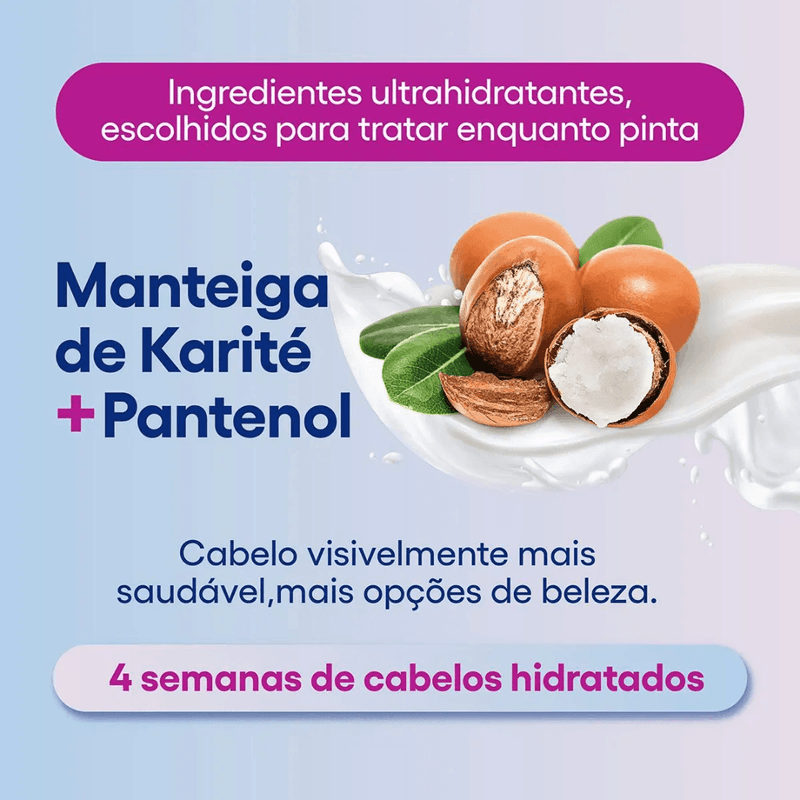 Hidratação e Proteção: Contém agentes hidratantes que protegem os fios durante o processo de coloração.