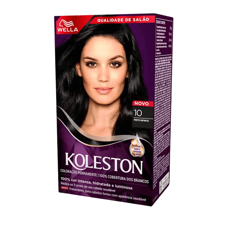 A Tintura Creme Koleston Noites Iluminadas 10 Preto Infinito com 1 é uma coloração permanente que proporciona uma cor intensa, vibrante e duradoura, ideal para quem busca um preto profundo com brilho luminoso. Com fórmula exclusiva, oferece cobertura completa dos fios brancos enquanto trata e protege os cabelos durante o processo de coloração.