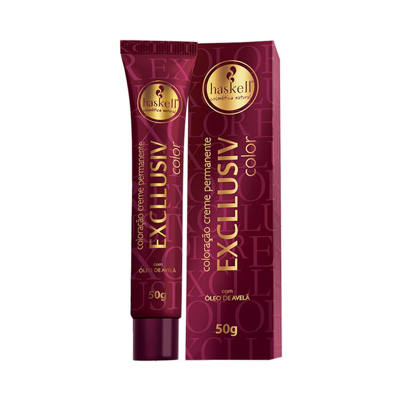 A coloração creme permanente Excllusiv Color Haskell promove cor profunda, duradoura, brilhante e uniforme da raiz ás pontas, além de uma perfeita cobertura dos cabelos brancos. Enriquecida com Óleo de Avelã, proporciona hidratação intensa, nutrição e toque aveludado.