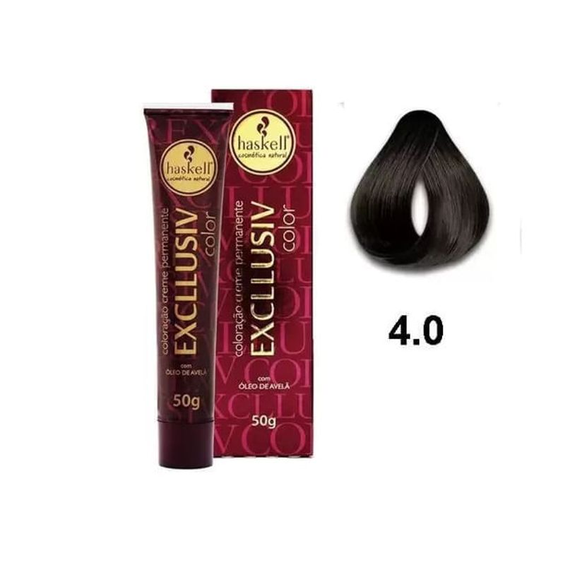 A coloração creme permanente Excllusiv Color Haskell promove cor profunda, duradoura, brilhante e uniforme da raiz ás pontas, além de uma perfeita cobertura dos cabelos brancos. Enriquecida com Óleo de Avelã, proporciona hidratação intensa, nutrição e toque aveludado.