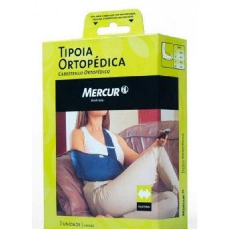 Tipoia Ortopédica Mercur Média Azul Marinho - Indicada para estabilizar e sustentar o membro superior em casos de pós-operatório, contusões, luxações e instabilidades - Pode ser usada também na sustentação do aparelho gessado - Confeccionada em algodão, material resistente e lavável, pode ser utilizada tanto no braço direito quanto no esquerdo - O ajuste da alça da Tipoia pode ser realizado de maneira simples, com apenas uma das mãos.