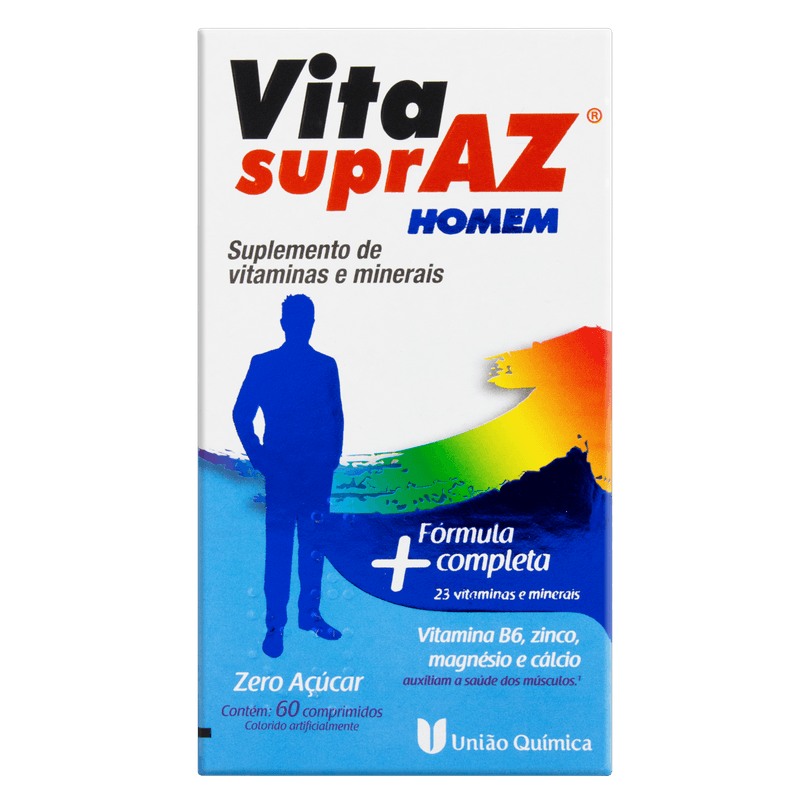 Vita SuprAZ Homem é um suplemento vitamínico-mineral especialmente formulado para atender às necessidades nutricionais específicas dos homens. Com 60 comprimidos por embalagem, este suplemento é a escolha ideal para homens que buscam manter uma saúde equilibrada e promover um bem-estar geral.