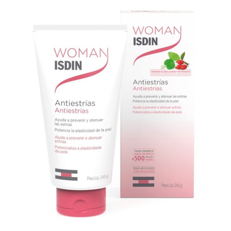 O Creme Woman ISDIN Antiestrias possui fórmula com Centella Asiática, Óleo de Rosa Mosqueta e Vitamina E com ação antioxidante. Previne e reduz as estrias, potencializando a elasticidade da sua pele, além de proporcionar hidratação intensa de rápida absorção.